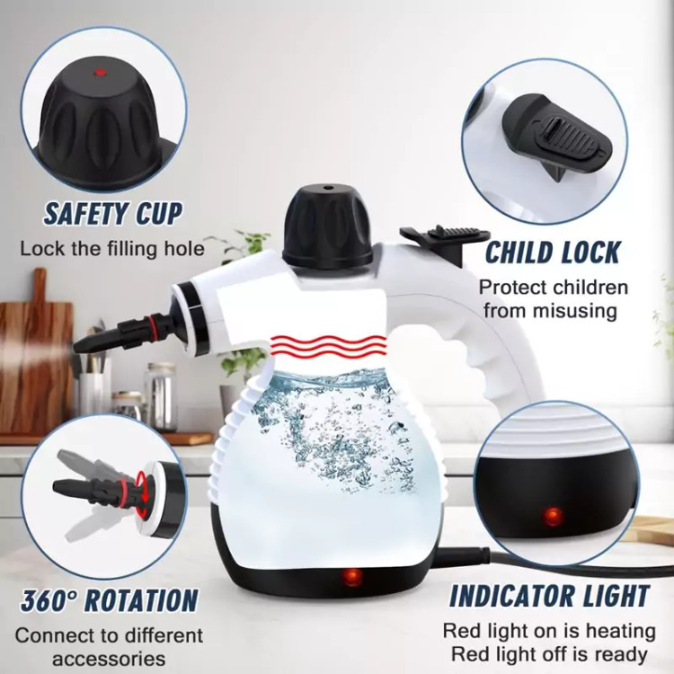 بخارشوی دستی، بخارشوی برای تمیز کردن، بخارشوی قابل حمل چند منظوره برای مصارف خانگی با قفل ایمنی و 10 کیت لوازم جانبی برای از بین بردن جرم، چربی و موارد دیگر، صرفه جویی در زمان و تلاش