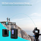 انتقال پایداراین سیستم میکروفون بی سیم از باند فرکانس بین المللی 2.4G استفاده می کند و از انتقال بی سیم تا 50 متر (160 فوت) پشتیبانی می کند. فرستنده و گیرنده بی سیم را می توان به طور خودکار در هنگام روشن بودن، بدون نیاز به نصب یا بلوتوث با یکدیگر مطابقت داد. انتقال صوتی سریعتر کاهش تأخیر به کمتر از 20 میلی ثانیه، انتقال با کیفیت بالا و سریع را فعال می کند. Plug and play، راه حل های صوتی با کیفیت بالا را برای مشکلات ضبط گوشی هوشمند و دوربین ارائه می دهد.