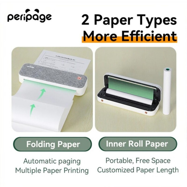 چاپ با کیفیت بالا: پرینتر کوچک قابل حمل Peripage A40 دارای یک گیره داخلی برای تنظیم عرض شیار کاغذ است و می تواند به طور انعطاف پذیر بین 210mm/107mm/77mm/56mm (A4/4/3/2) جابجا شود. کاغذ اندازه ای برای پاسخگویی به نیازهای چاپ متعدد شما، هم از کاغذ رول و هم کاغذ تاشو پشتیبانی می شود. چاپگر حرارتی قابل حمل به فرمت های فایل های متعدد، Word، Excel، PPT، TXT و JPG مجهز شده است. برنامه چاپ همچنین از چاپ قالب و چاپ عکس نیز پشتیبانی می کند. یک چاپگر چندین مقدار ایجاد می کند.
