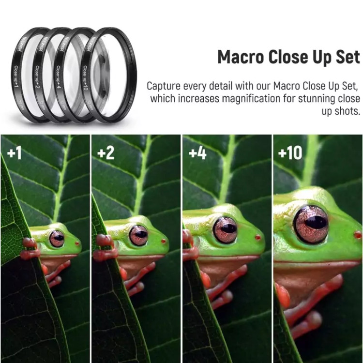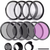 مجموعه فیلتر UV CPL FLD + مجموعه ماکرو نزدیک (+1 + 2 + 4 + 10) + مجموعه فیلتر ND (ND2 ND4 ND8) + سایر موارد