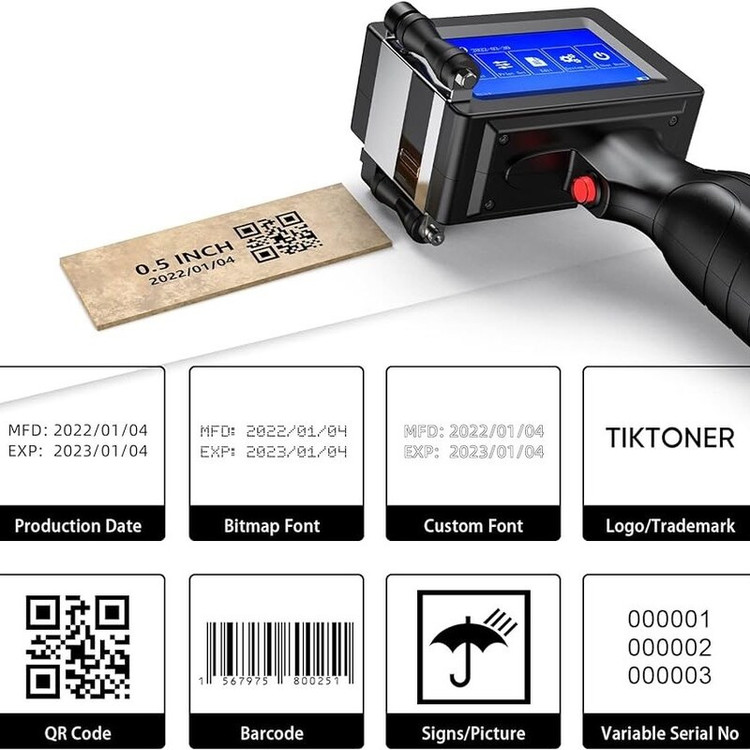 کد پشت سر هم 360 درجه و محتویات مختلف چاپگر دستی می تواند 360 درجه محتویات مختلف را چاپ کند، از جمله چاپ متن واضح، شماره های سری سریال، نمادها، کدهای QR، بارکد، تصاویر، تاریخ انقضا، تاریخ تولید، شمارنده و غیره. دستگاه چاپ تاریخ دستی با تنوع چاپ شما مطابقت دارد و کارهای چاپ شما را آسان می کند.