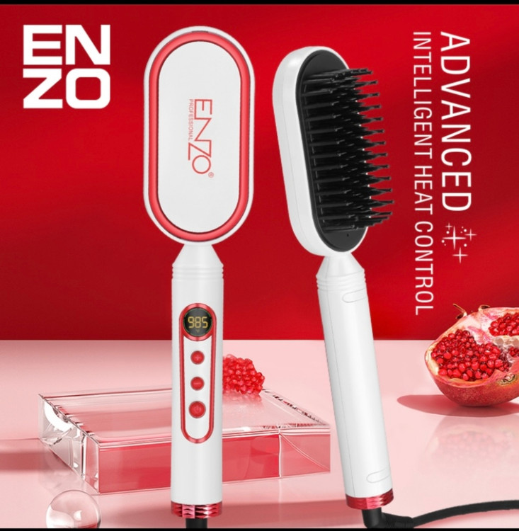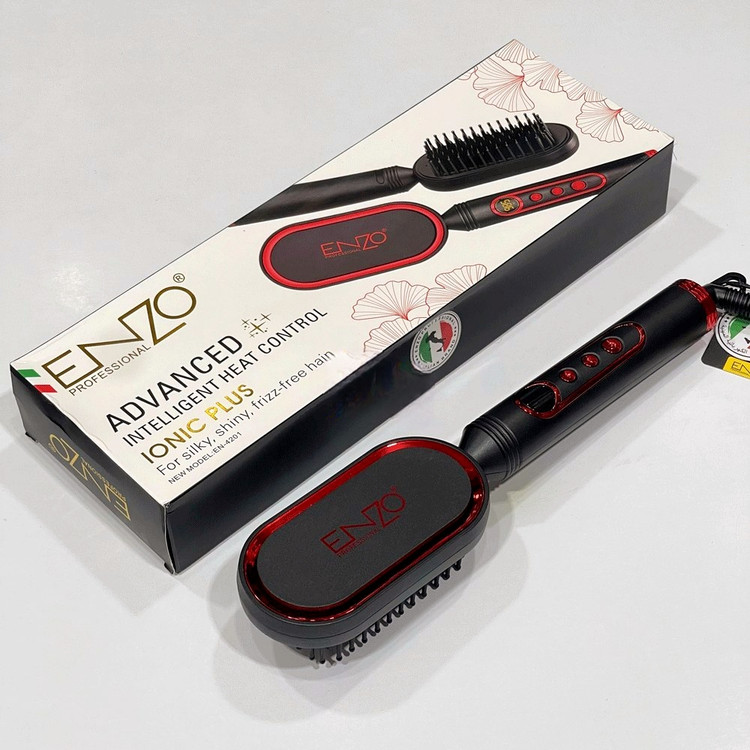این تصویر یک برس حرارتی حرفهای ENZO را نشان میدهد که برای صاف کردن و حالت دادن به موها طراحی شده است.
