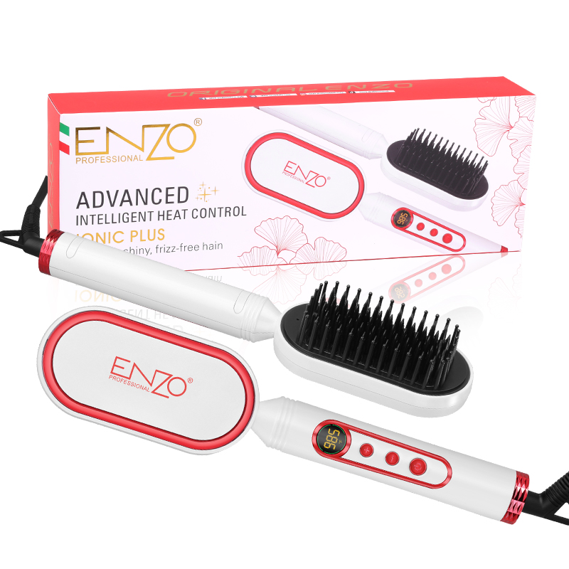 این تصویر یک برس حرارتی حرفهای ENZO را نشان میدهد که برای صاف کردن و حالت دادن به موها طراحی شده است.