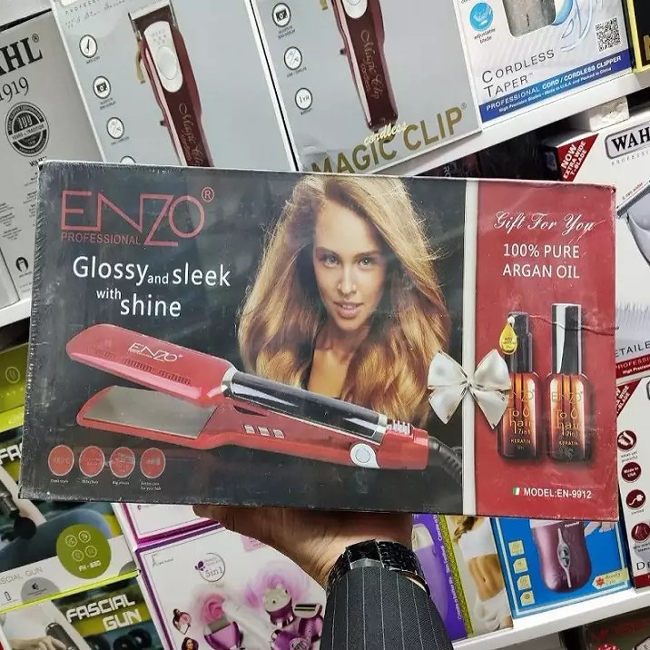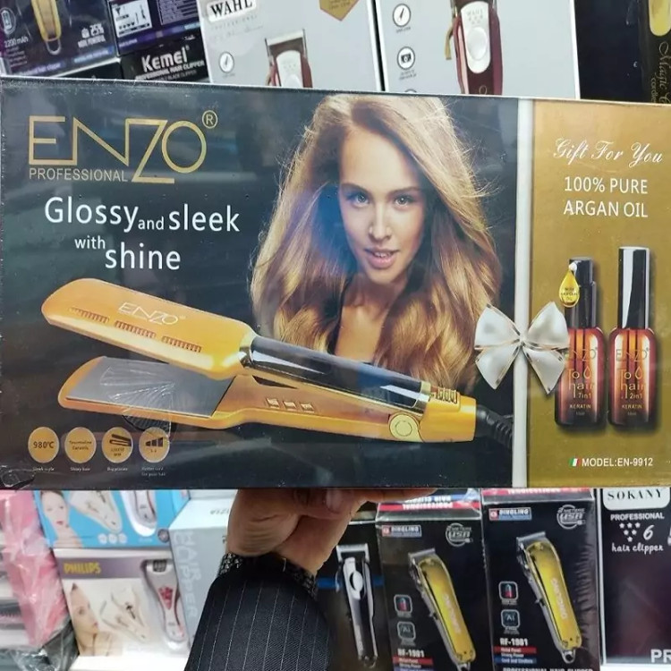 اتو مو انزو مدل ENZO EN-9912 یکی از حرفه ای ترین و بهترین اتو موهای موجود در بازار است. نوع صفحات اتو مو پهن بوده، که حرارت را به صورت مساوی در تمام سطوح تقسیم می کند. بیشینه دما در اتو مو ENZO EN-9912 نیز 980 درجه فارنهایت (230 درجه سانتیگراد) می باشد، پایین ترین درجه 580 درجه فانهایت (110 درجه سانتیگراد) می باشد. اتو موز انزو 9912 به صفحه های سُر سرامیکی با پوشش کراتینه مجهز بوده، که موهای شما را براق تر، صاف تر و شفاف تر نشان می دهد. یکی از مهم ترین ویژگی های اتو مو انزو مدل EN-9912 دارای صفحه نمایش بوده که درجه دما را نشان می دهد و همینطور سیم گردان بوده که ضمن راحت کردن کار از فرسودگی سیم جلوگیری می کند. اتو مو کراتینه انزو مدل ENZO EN-9912 در مدت زمان 30 ثانیه گرم شده و برای استفاده در سالن های آرایشگری و خانه مناسب است.